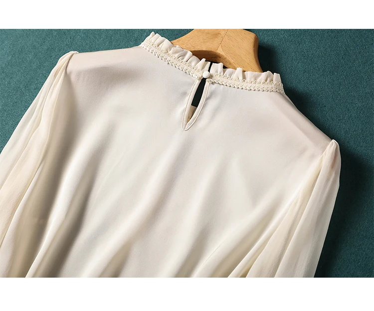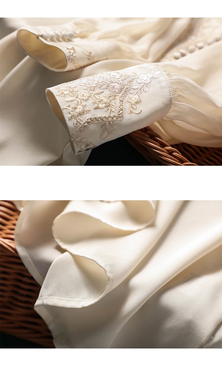 Silk Women's Blouses 2023 Spring Autumn Print Long Sleeve Shirts Loose Korean O-Neck Lace Top New Casual Clothing