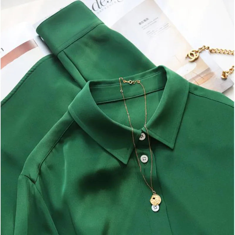 Spring and Summer Silk Shirts Thickened 40MM Silk Shirts White Commuting Silk Shirts WOMEN 100% Mulberry Silk Blouse