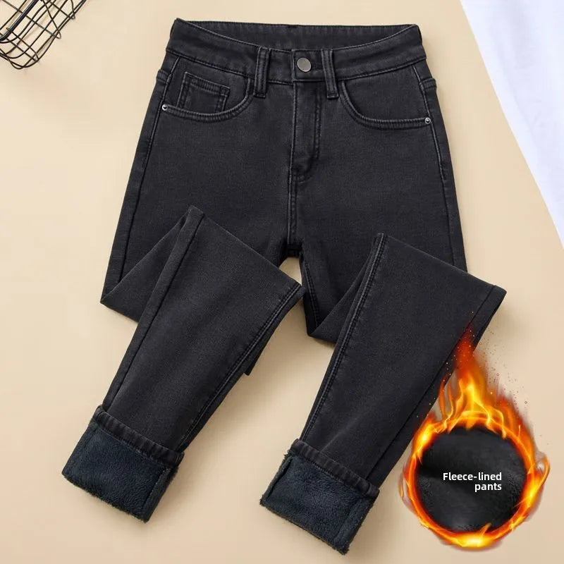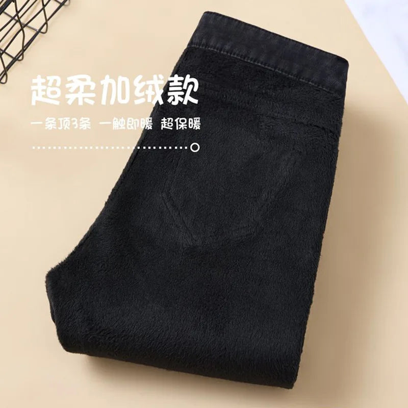 Women High Waist Fleece Jeans 2025 Fall Winter New Arrival Slimming Tummy Control Skinny Pants Stretch Pencil Trousers