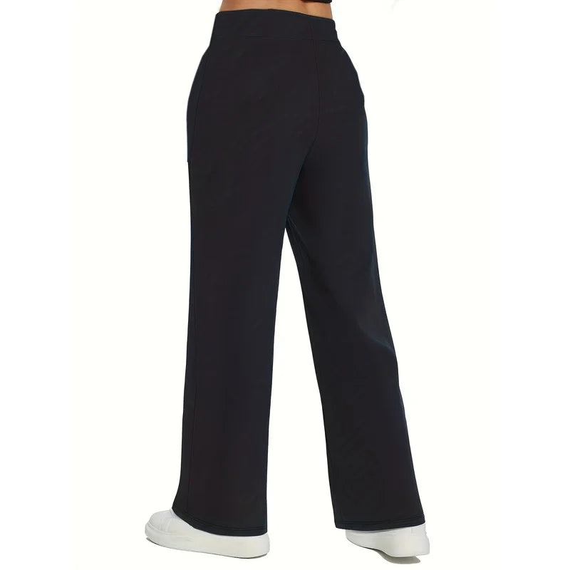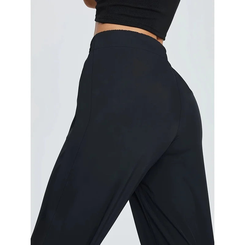 2025 Sophisticated Straight Leg Trousers Women Elastic Waist Slimming Black Daily Office Casual Pants