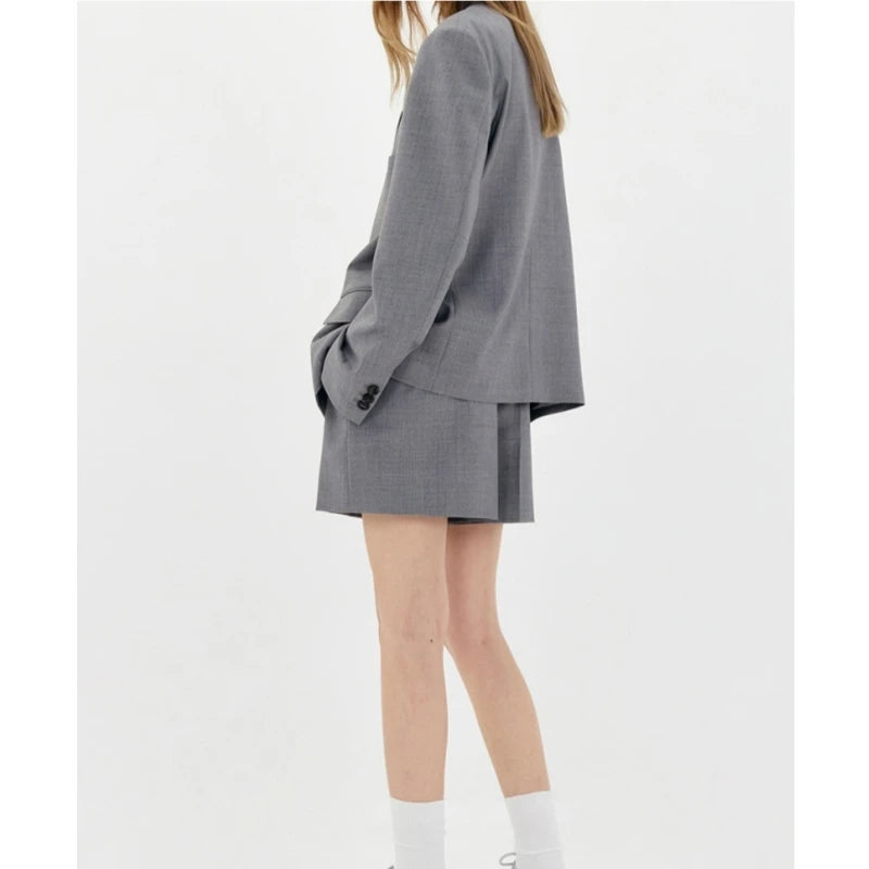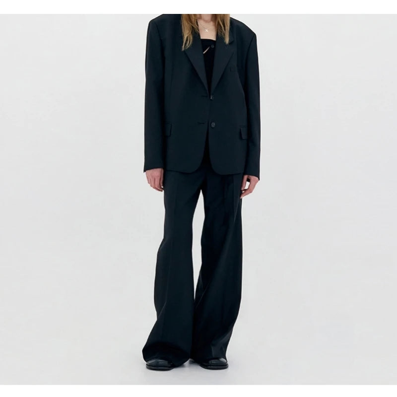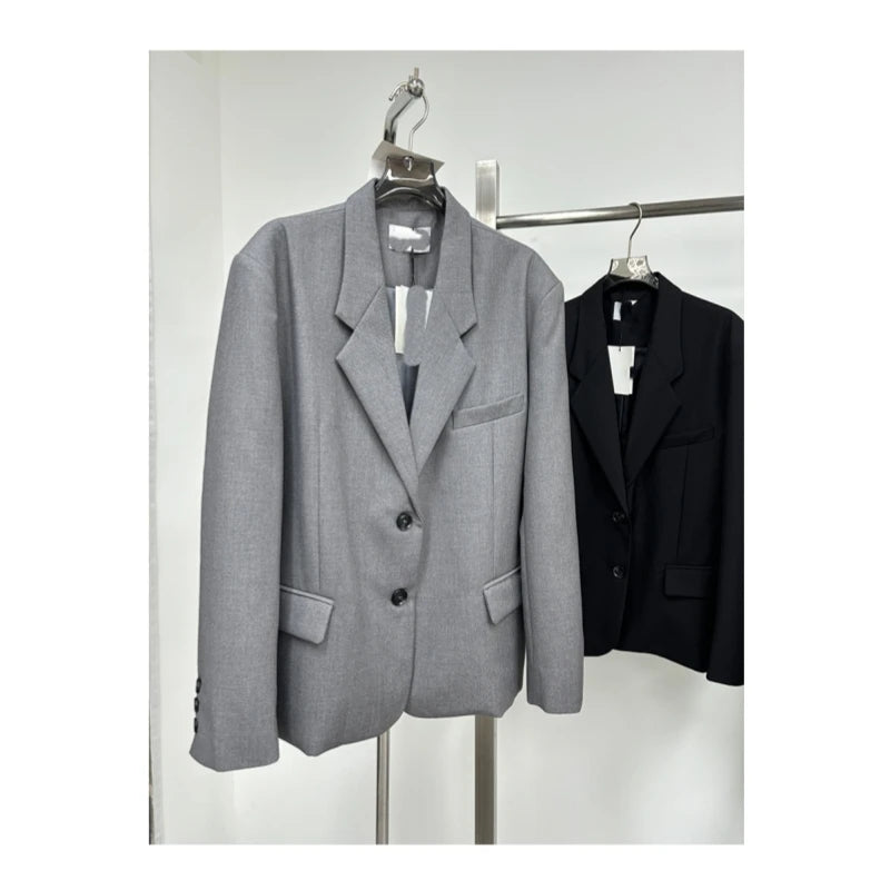 25 Year Spring and Autumn New Women's Loose Wide Shoulder Unique Design Wool Simple Versatile Suit Coat