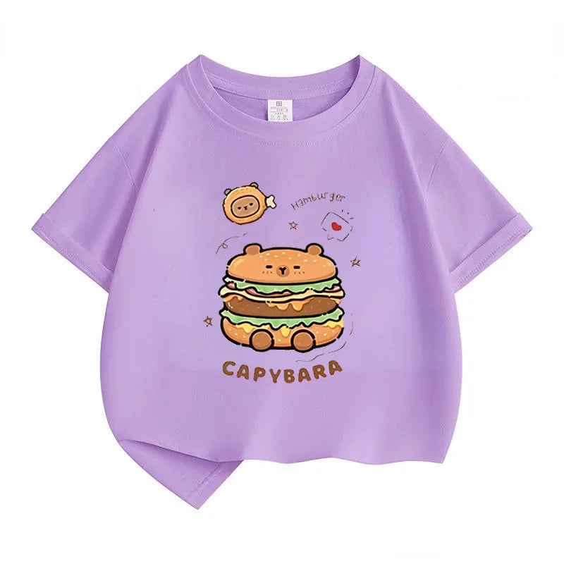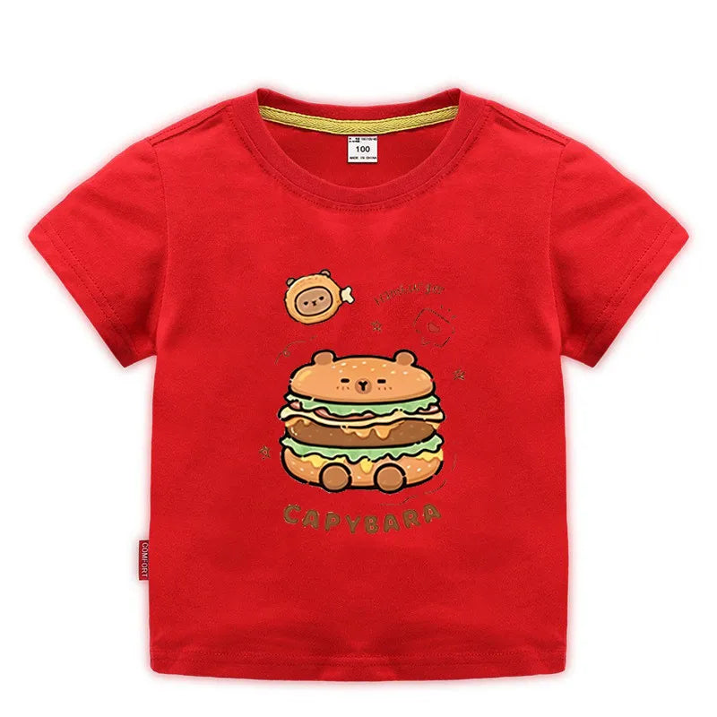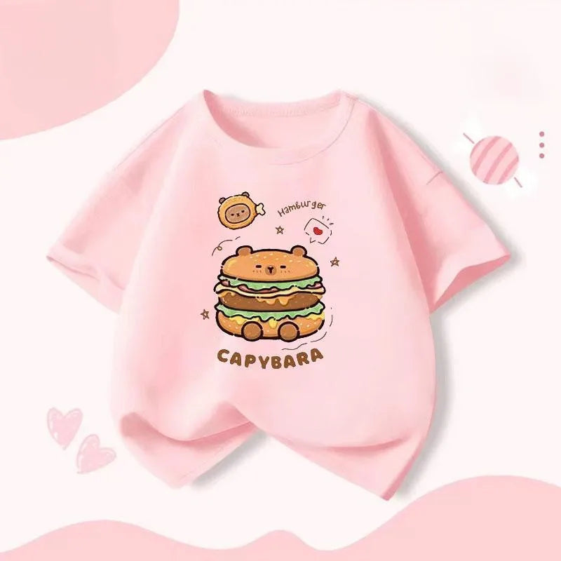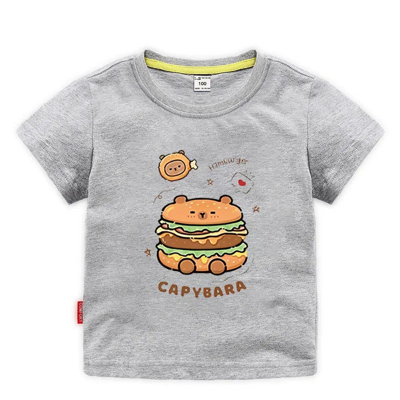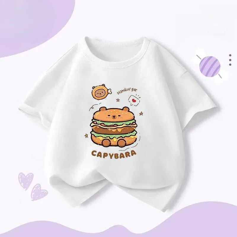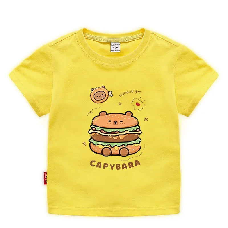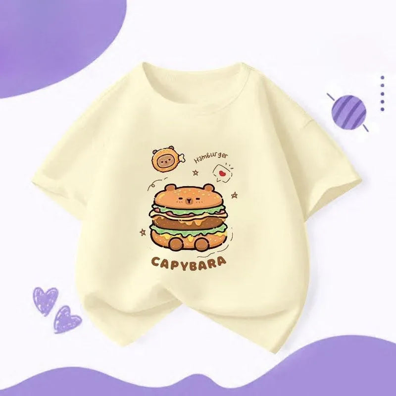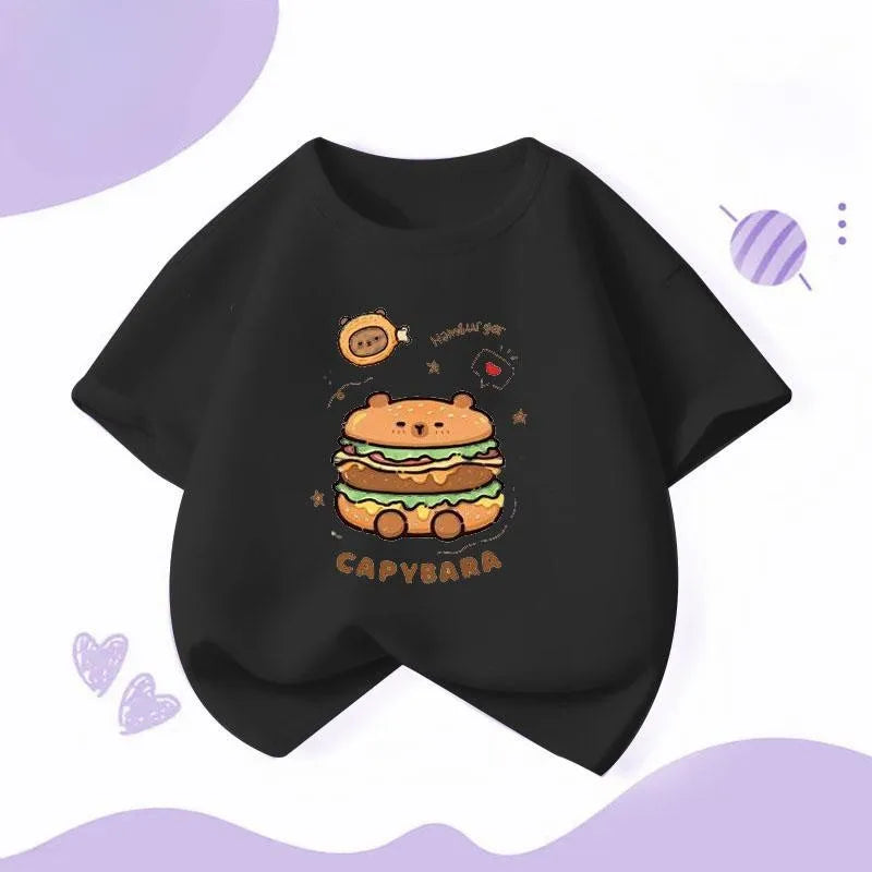 Capybara Hamburg Kapibara Boys and Girls Elementary School Short Sleeved T-shirt Casual Bottom Top