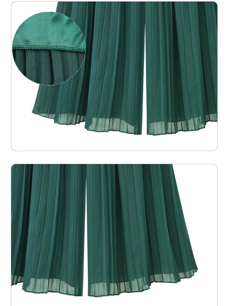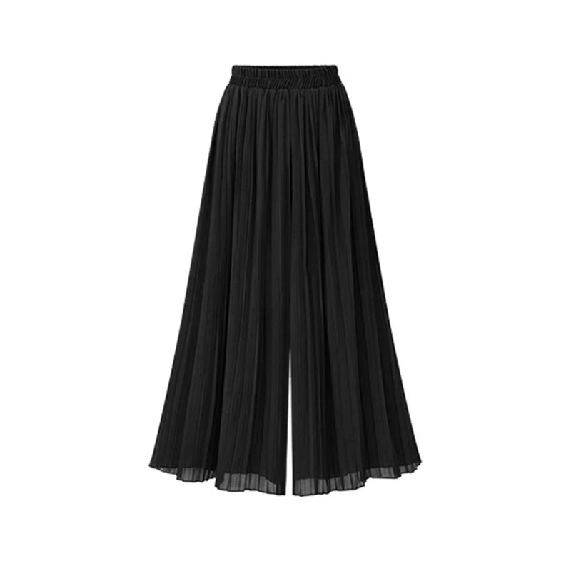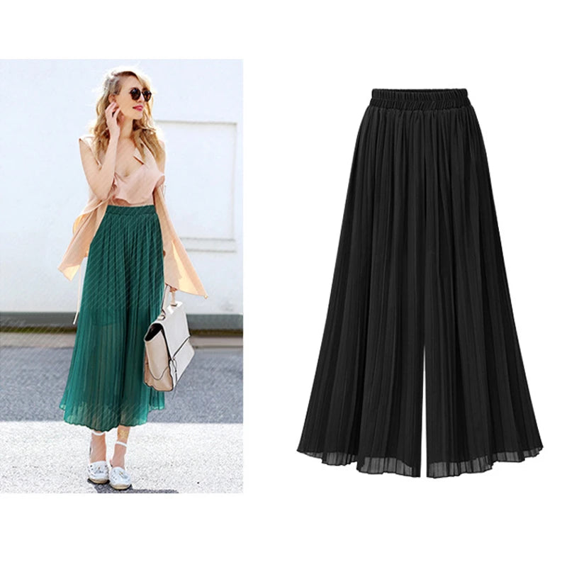 Loose Wide Leg Plus Size Pants Women Summer Fashion Streetwear Pleated Pants Skirts Elastic Waist Culottes Black Green Trousers
