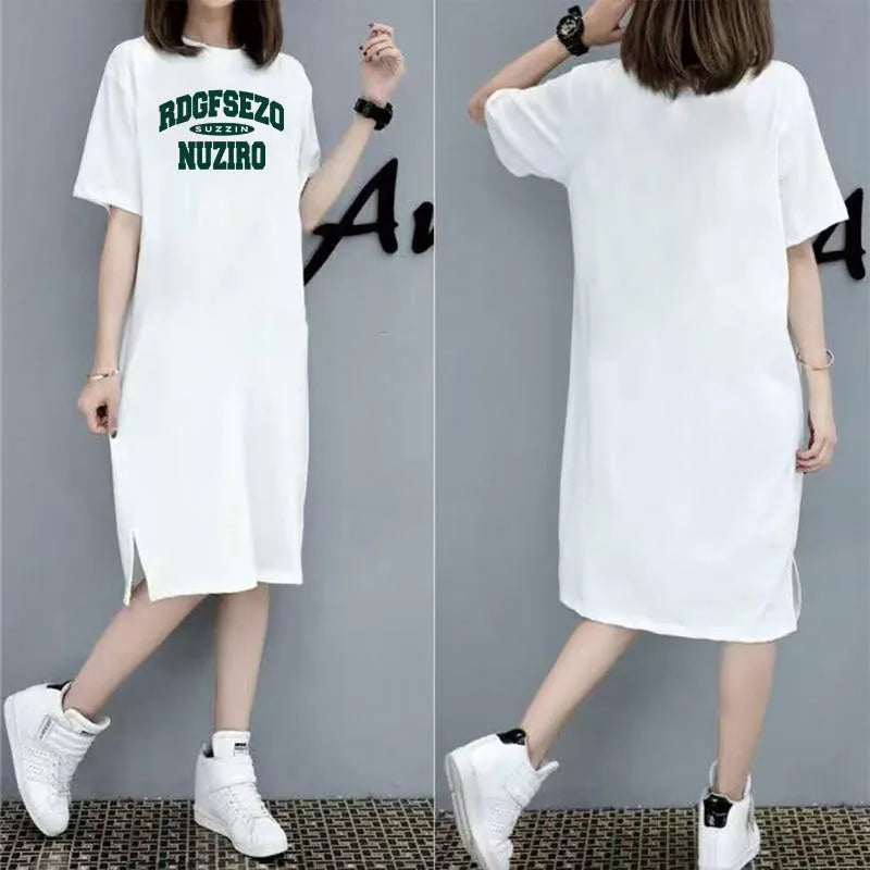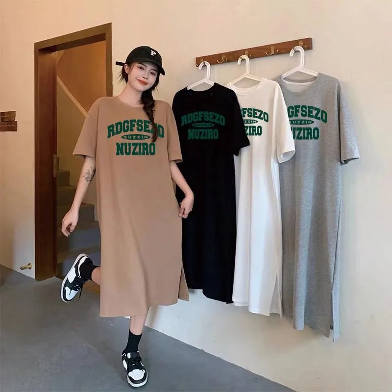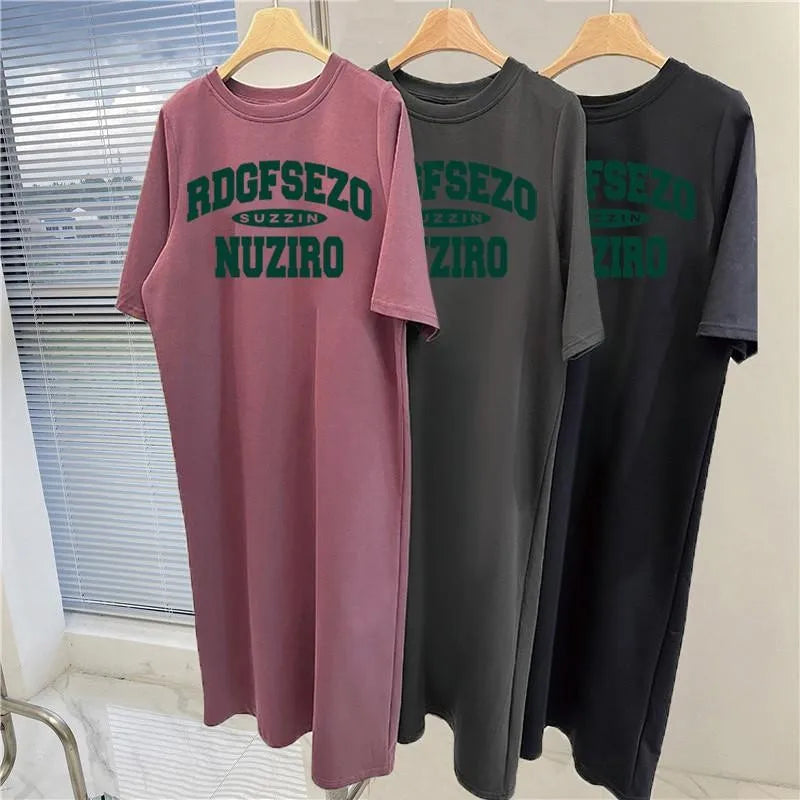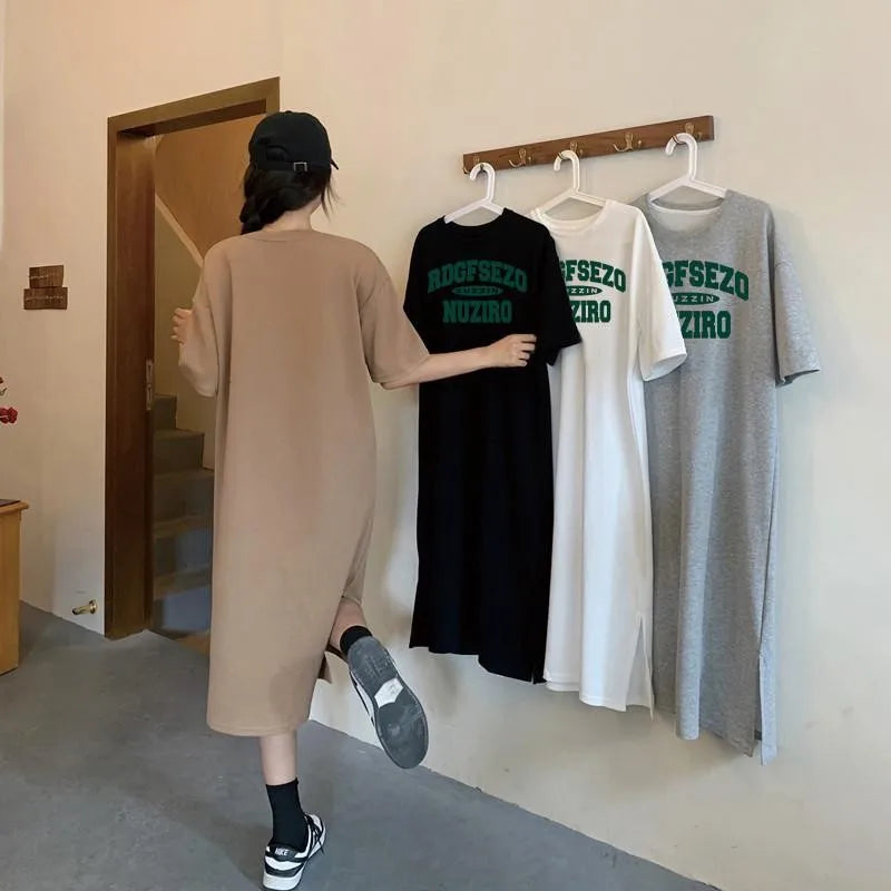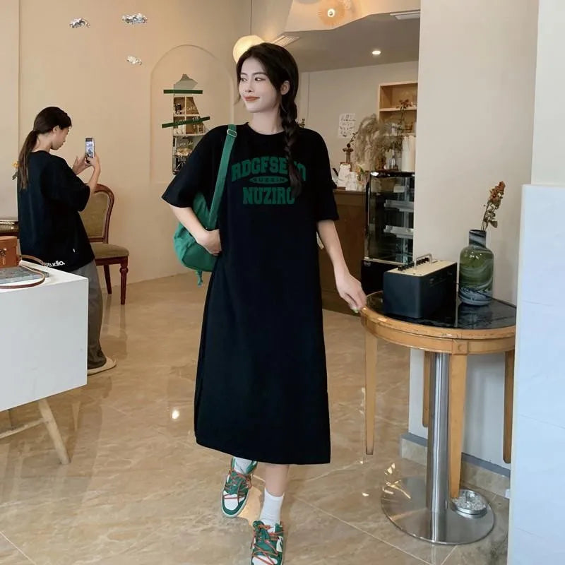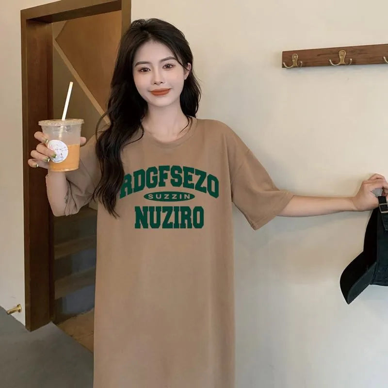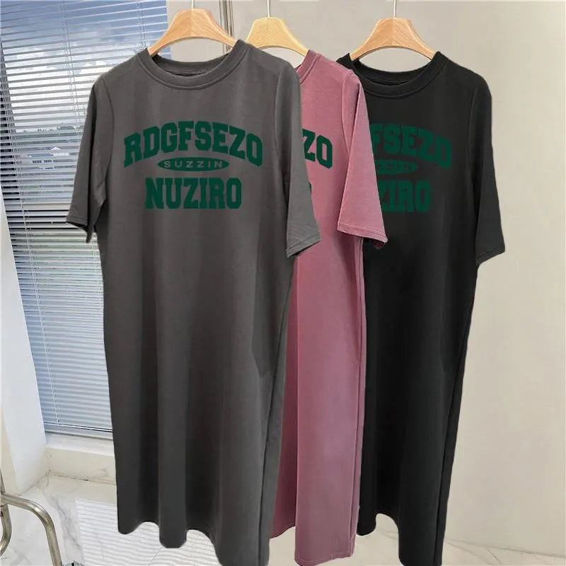 Popular Simple English Printed Short-sleeved Women Maternity Dress Summer Loose Round Neck Home Wear