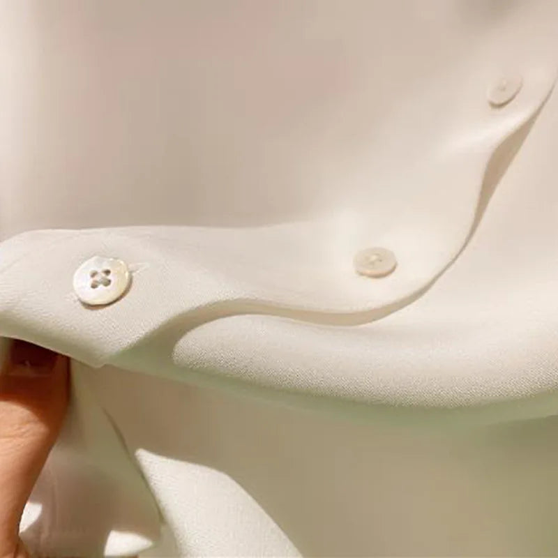 Spring and Summer Silk Shirts Thickened 40MM Silk Shirts White Commuting Silk Shirts WOMEN 100% Mulberry Silk Blouse