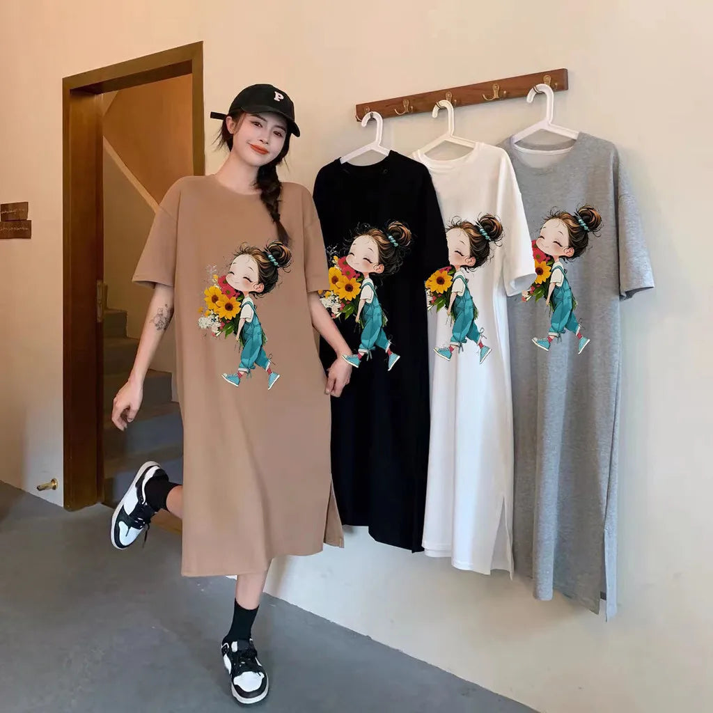 Summer Cartoon Print New Trend Loose Short Sleeve Comfortable Women Maternity Dress