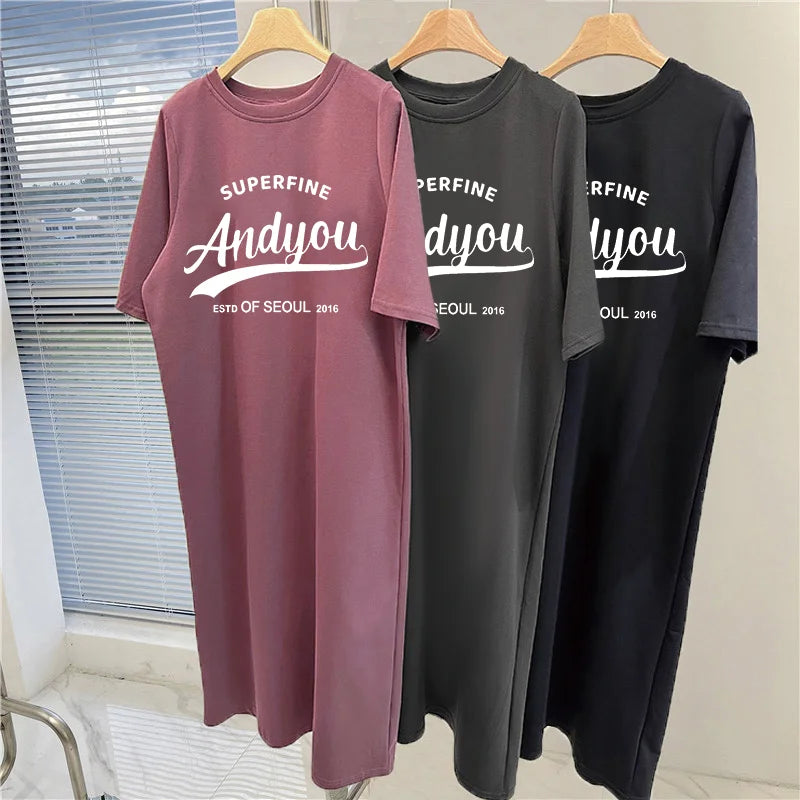 Summer European and American Letters Trendy Printed Short-sleeved Dress for Women Pregnant Women Loose and Comfortable Dress