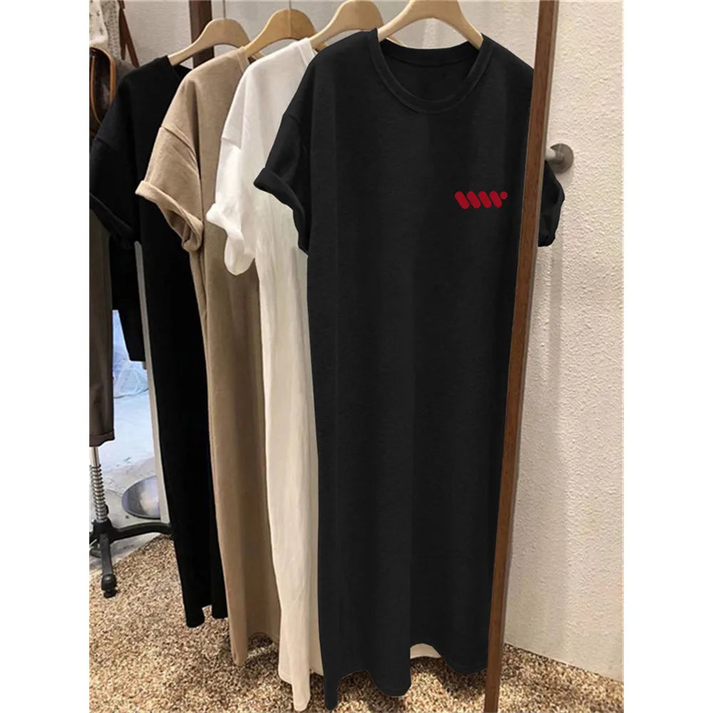 Summer Loose European and American Letters Printed Casual Short-sleeved Round Neck Women Maternity Dress