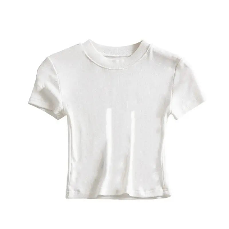 Summer New Short Sleeved T-shirt Basic Small Round Neck Solid Color Base Shirt