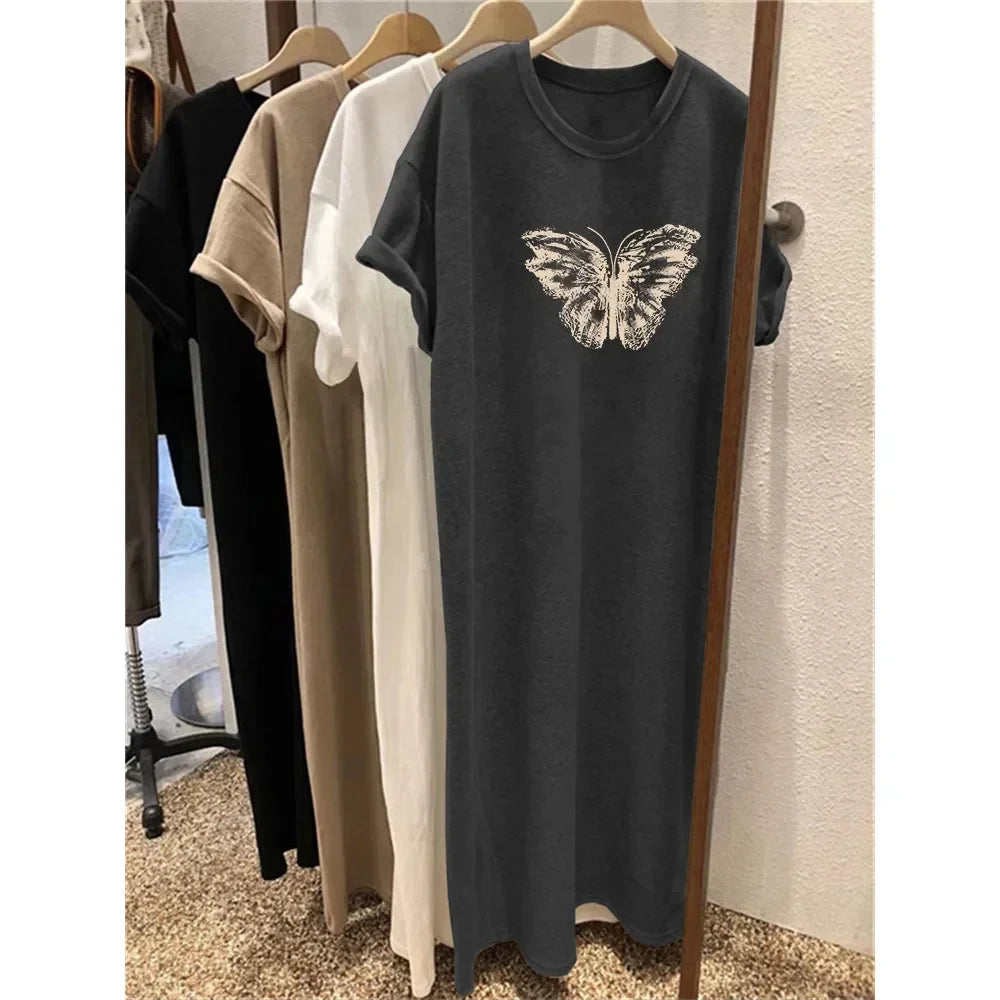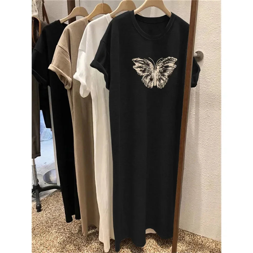 Summer Short Sleeved Dress Women's Korean Ins Butterfly Print Oversized Loose Round Neck DressFashionable Loose Maternity Dress