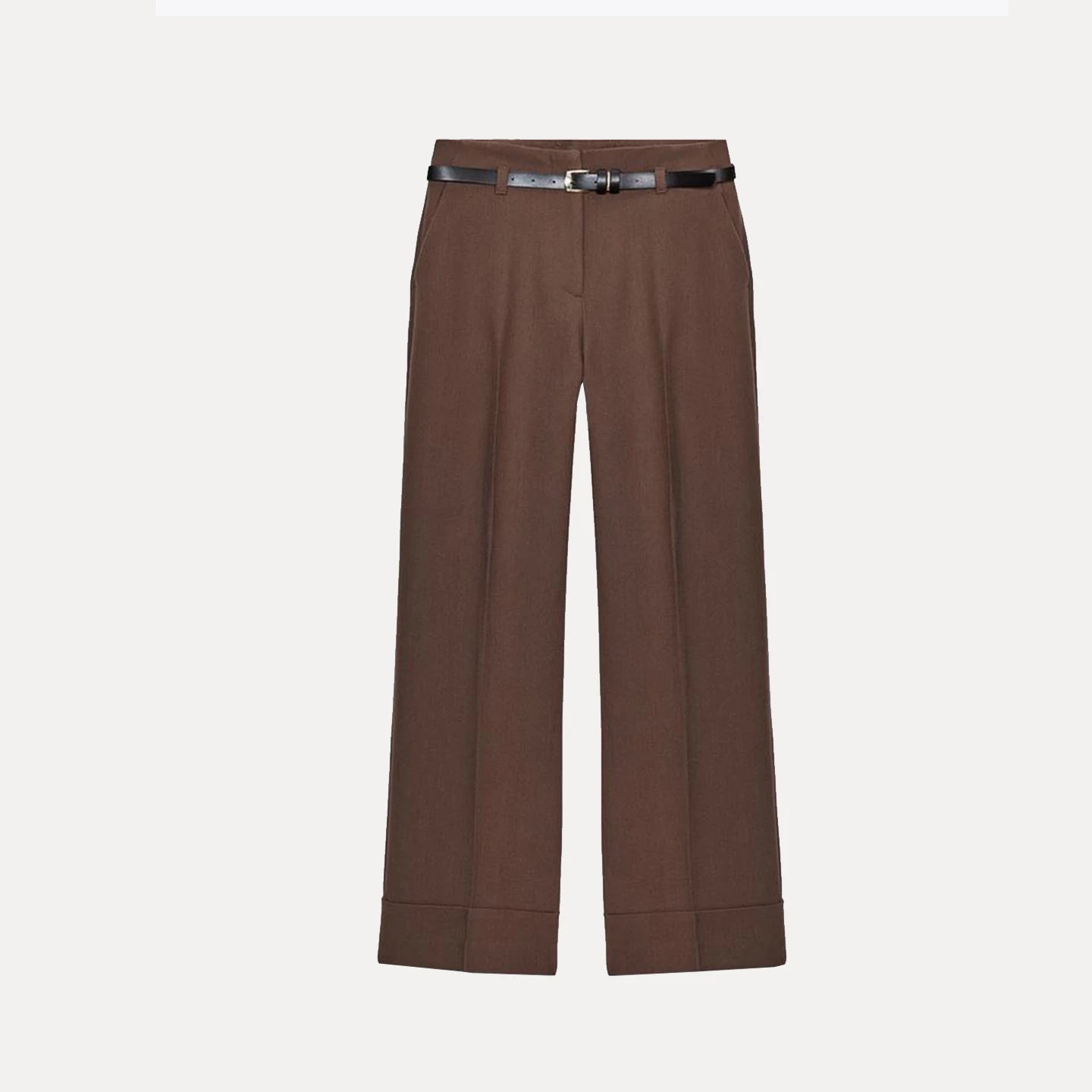 Z Women's Faion Personali Cuffed Pants with Belt High Waist Straight Leg Long Trousers Ele Lady Commute Sle